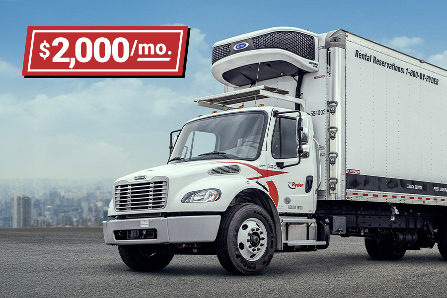 ***** Terms and Conditions: Offer ends December 31, 2025. Offer valid only for new Schedule A’s to Ryder ChoiceLease Full Service Truck Lease and Service Agreements and is not available for previously leased vehicles or in combination with any other offers or promotions. Offer available only for the vehicles specified and quantities of such vehicles are limited. Offer limited to a maximum of 30,000 miles per year for Chevrolet LCF with Liftgate. Offer limited to a maximum of 35,000 miles per year for Freightliner M2 and International MV607 with Liftgate. Offer valid only for a 24-month maximum term. Offer may be modified or cancelled at any time, in Ryder’s sole discretion, without notice. Customer shall provide automobile liability insurance. Exterior washings and substitute vehicle services are not included. Any applicable taxes, licensing, permits, fees, or other components, specifications, or services required or ordered by Customer, are not included in the base price. Offer valid only in the US and is subject to all applicable US laws and regulations. Pricing and availability may vary depending on geographical location. Adjustments based on the Consumer Price Index will apply during the term of the lease. Subject to credit approval. Valid for Fair Market Value lease only. Other restrictions may apply.