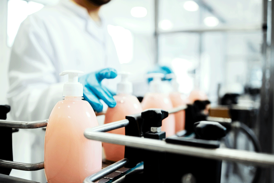 products put into bottles with dispensing pumps