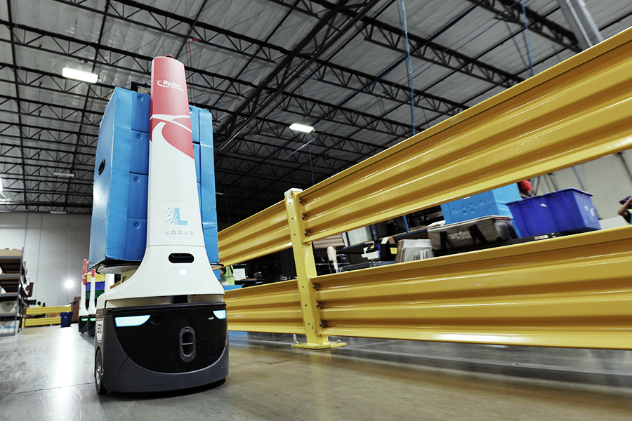 CPG warehouse robots moving packages