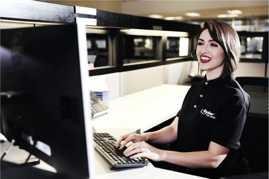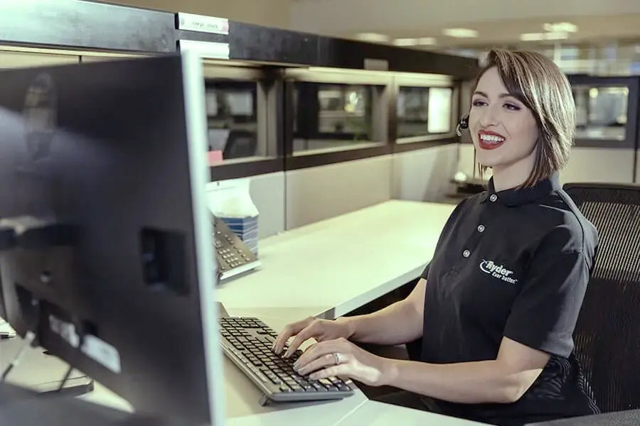 A Ryder transportation management employee working on a monitor