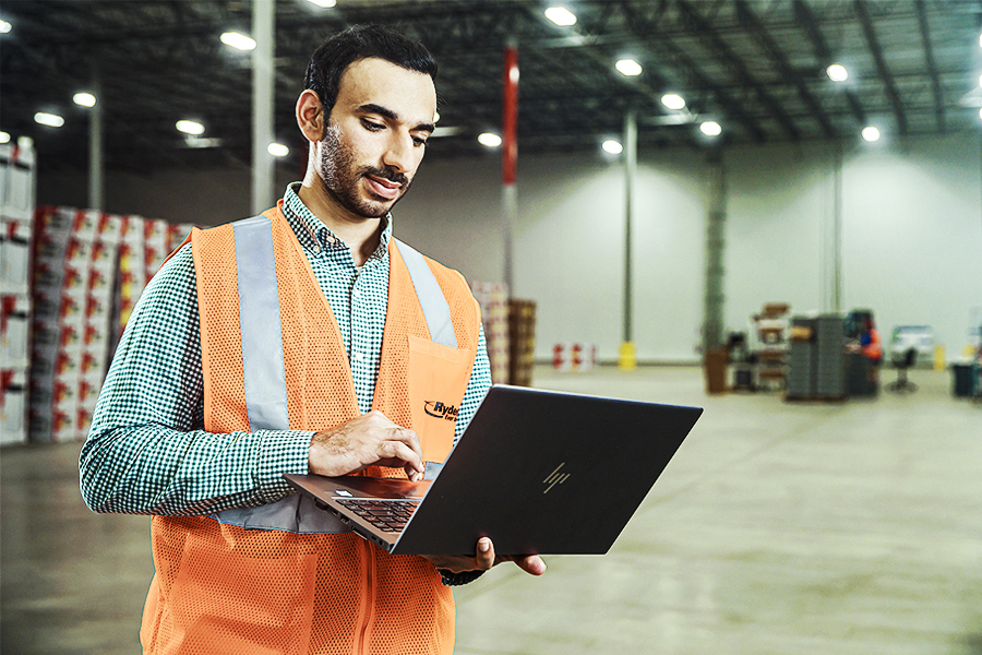A Ryder warehouse employee using Rydershare to automate logistics tasks