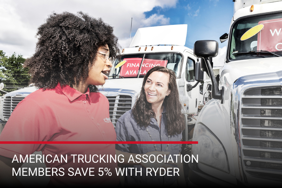 ********Offer: (i) is valid only in the U.S.; (ii) may only be redeemed for Ryder Certified™ & Ryder DOT Verified™ used vehicles; (iii) is valid only for purchase transactions at retail sales pricing, (iv) cannot be applied to previous sales, (v) is subject to vehicle availability and Ryder’s standard terms and conditions, and (vi) may be modified or canceled at any time, in Ryder’s sole discretion, without notice. A valid American Trucking Associations member certificate must be presented at time of sale to qualify. All discounts are subject to final approval at Ryder’s discretion. All sales are subject to the terms and conditions of Ryder's Bill of Sales and limited warranty. Additional restrictions may apply. Ryder and Ryder Logo are registered trademarks of Ryder System, Inc. Ever better is a trademark of Ryder System, Inc. Copyright © 2023 Ryder System, Inc. All rights reserved.