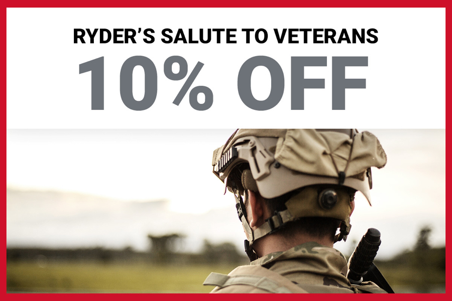 *****Offer valid only in the U.S.. This program is subject to final approval and can be canceled and modified at any time without notice. Valid for purchase transactions only. Only valid on Ryder Certified & Ryder DOT Verified used vehicles and cannot be applied to previous sales. Not all Ryder assets are eligible. Discount is only valid while supplies last and are subject to availability. Discount is valid on retail sales only. Offer may not be available in connection with other offers or promotions. A valid Military ID, Veteran ID or DD Form 214 must be presented at time of sale. All discounts subject to final approval at Ryder’s discretion. All sales are subject to the terms and conditions of Ryder’s Bill of Sales and limited warranty. All rights reserved. © Ryder and Ryder Logo are registered trademarks of Ryder System, Inc. Ever better is a trademark of Ryder System, Inc. Copyright © 2020 Ryder System, Inc.