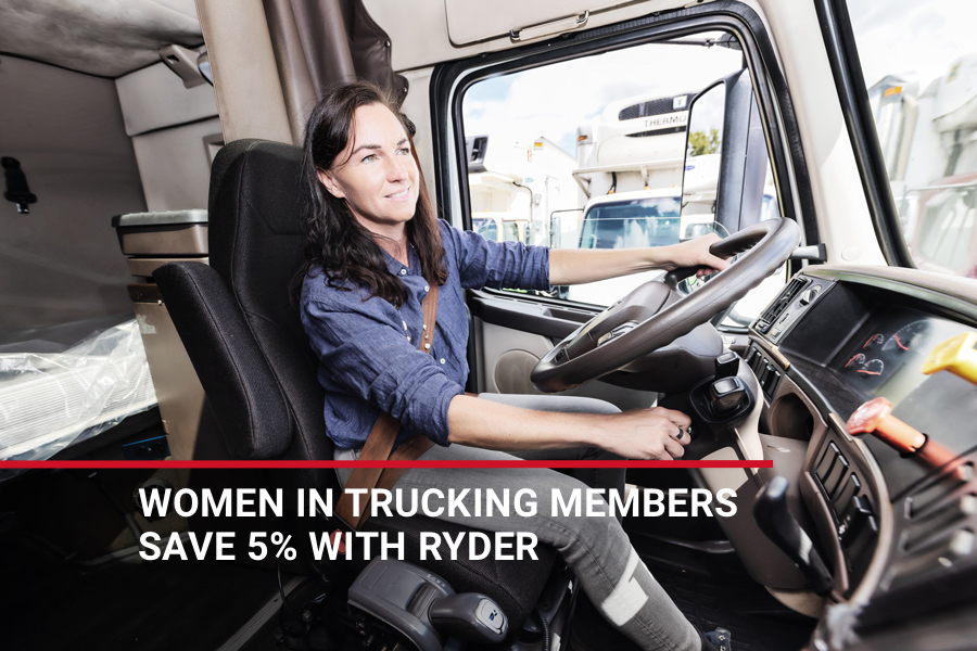 *******Offer: (i) is valid only in the U.S.; (ii) may only be redeemed for Ryder Certified™ & Ryder DOT Verified™ used vehicles; (iii) is valid only for purchase transactions at retail sales pricing, (iv) cannot be applied to previous sales, (v) is subject to vehicle availability and Ryder’s standard terms and conditions, and (vi) may be modified or canceled at any time, in Ryder’s sole discretion, without notice. A valid Women In Trucking member card and a valid women-owned business certification must both be presented at time of sale to qualify. All discounts are subject to final approval at Ryder’s discretion. All sales are subject to the terms and conditions of Ryder's Bill of Sales and limited warranty. Additional restrictions may apply. Ryder and Ryder Logo are registered trademarks of Ryder System, Inc. Ever better is a trademark of Ryder System, Inc. Copyright © 2022 Ryder System, Inc. All rights reserved.